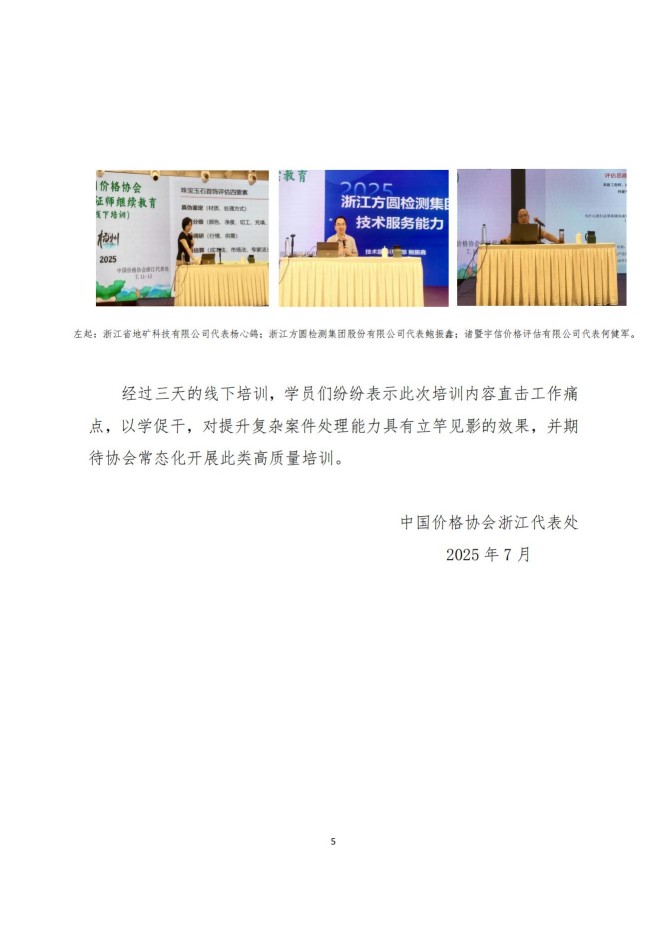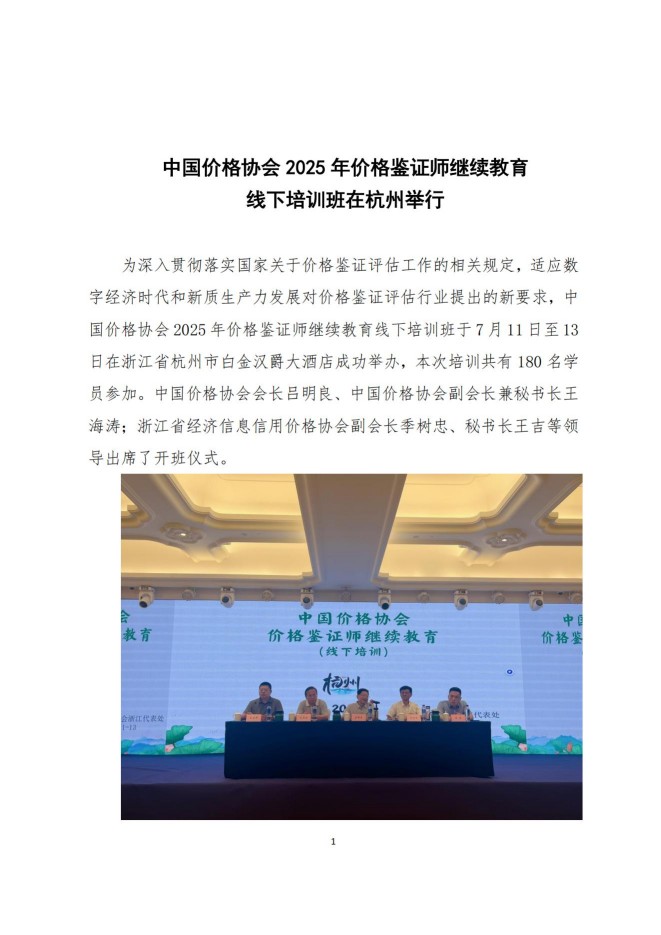中国价格协会 2025 年价格鉴证师继续教育 线下培训班在杭州举行
